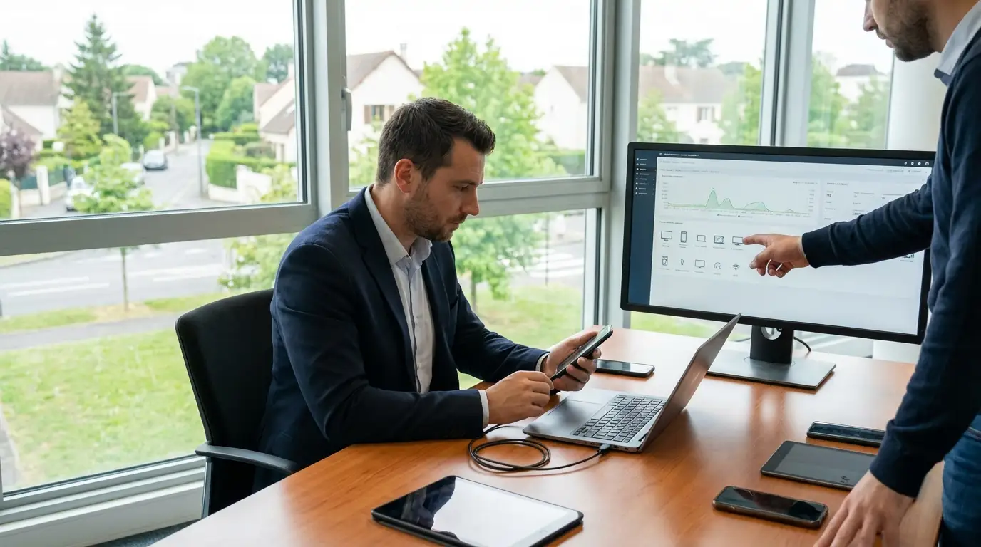 Selon vos besoins, nous combinons interventions sur site (audit, déploiement, câblage informatique, optimisation du réseau Wi-Fi professionnel) et accompagnement à distance (supervision, support, ajustement des politiques MDM). Cette proximité nous permet de comprendre vos contraintes terrain : entrepôts logistiques, agences commerciales, établissements de santé, collectivités, sièges sociaux.